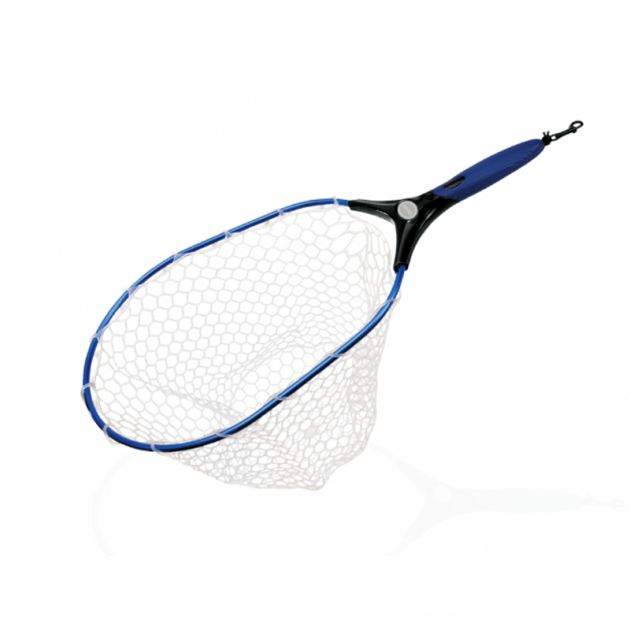 Knot-free, soft rubber net minimizes damage to fish.